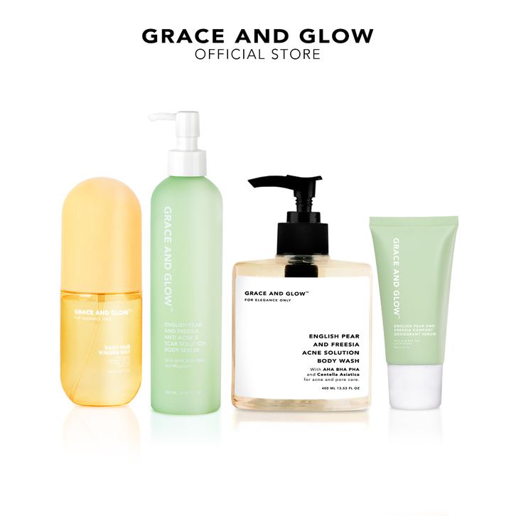 GRACE AND GLOW 4IN1 ENGLISH PEAR SERIES BODY CARE SET - PAKET PERAWATAN TUBUH MEMBUNUH BAKTERI PENYEBAB JERAWAT (SABUN M