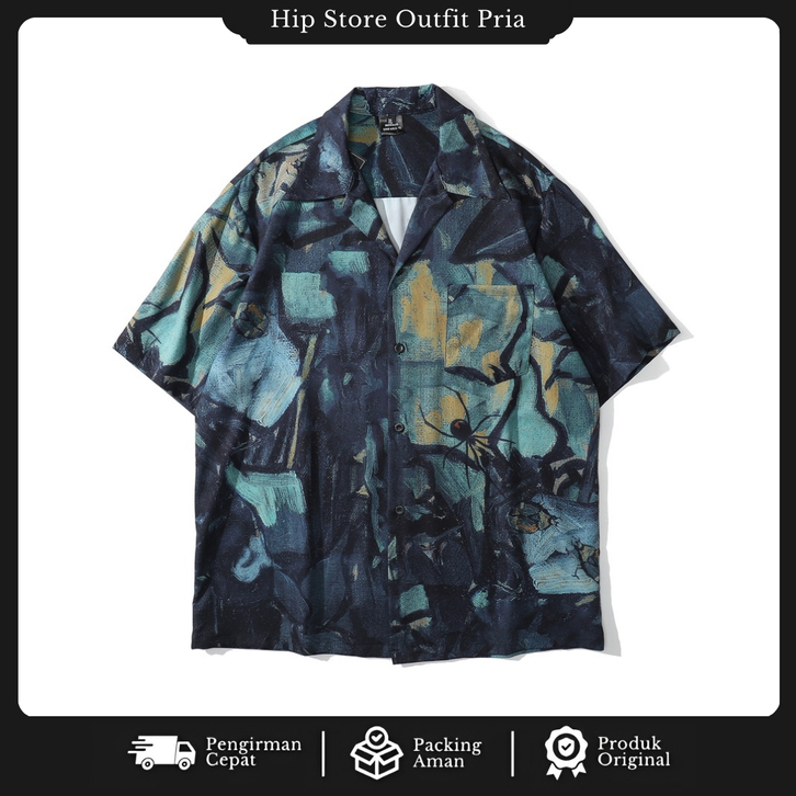 KEMEJA TANGAN PENDEK PRIA KEKINBIAN | KEMEJA MOTIF PRIA HAND PAINT FULL PRINTED HAWAIIAN SHIRTS MEN