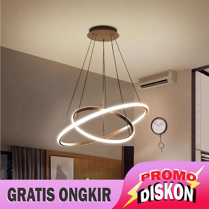 CICILAN/BARU+ LAMPU GANTUNG MINIMALIS MODERN 3 WARNA LAMPU HIAS RUANG TAMU LED 2 RING LAMPU GANTUNG KAMAR TIDUR
