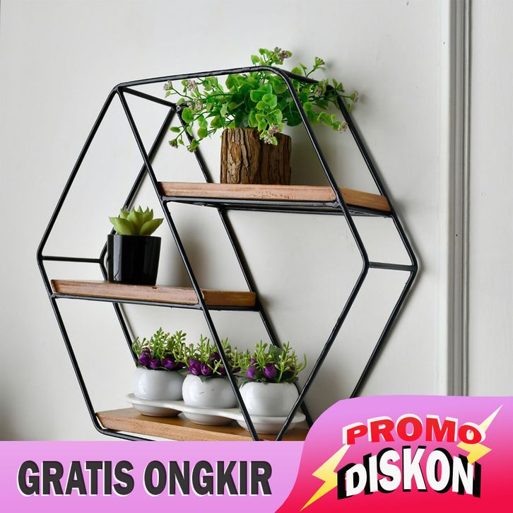 CICILAN/BARU+ RAK DINDING BESI MINIMALIS - DEKORASI DINDING - HIASAN DINDING - ORNAMEN RUANG TAMU - HEXAGON HB3