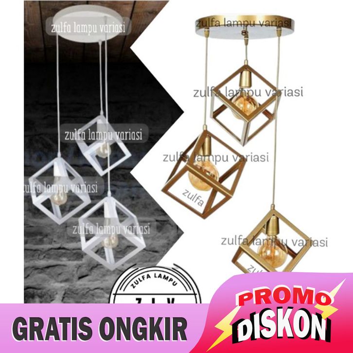 CICILAN/BARU+ LAMPU GANTUNG KUBUS CABANG 3 BULAT