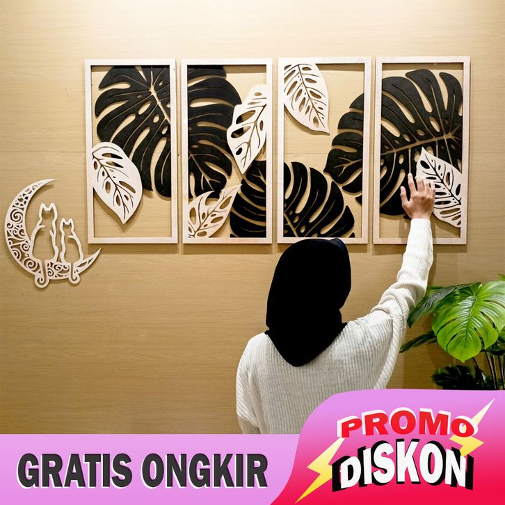 CICILAN/BARU+ SET HIASAN DINDING RUANG TAMU DEKORASI MOTIF DAUN JANDA BOLONG PAJANGAN KAMAR TIDUR