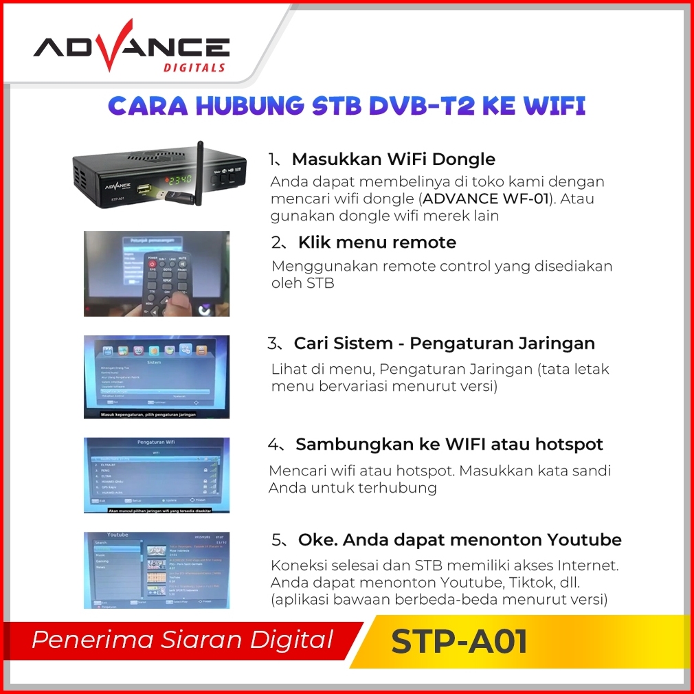 Set Top Box Tv Digital Receiver Penerima Siaran Full Hd Stb Wifi Bisa Youtube Dvb-t2 Garansi 1 Tahun