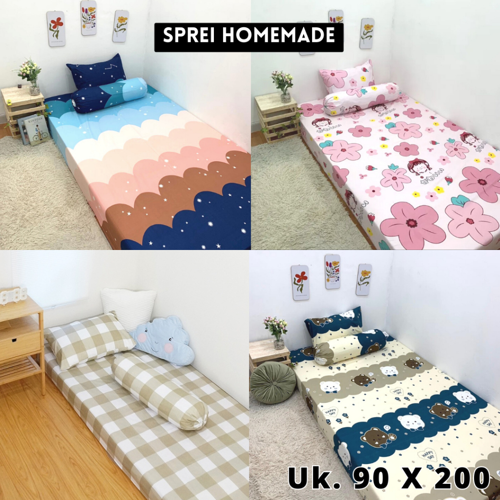 SPREI HOMEMADE SINGLE BED UKURAN 90 X 200 / SEPREI NOMER 4 TINGGI 20CM