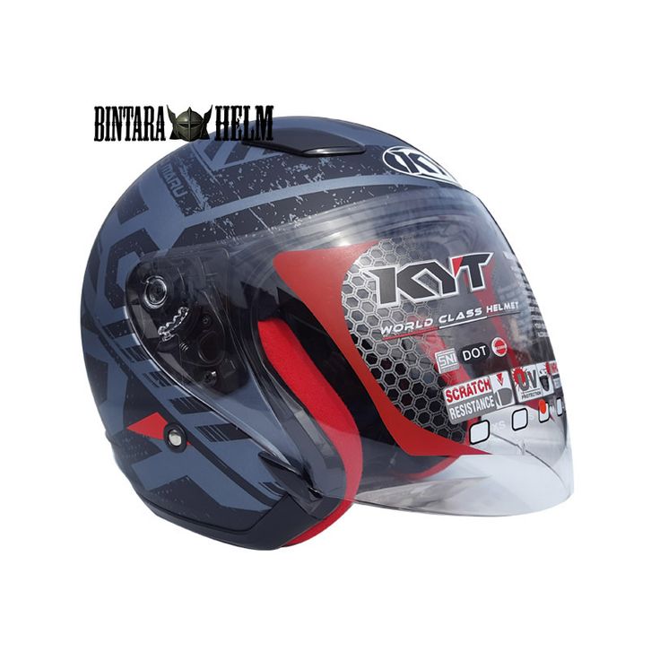 HELM KYT ORIGINAL HELM KYT DJ MARU MOTIF #16 MATT ALL GRAY BLACK ORI HELMET HALF FACE KYT