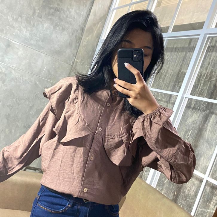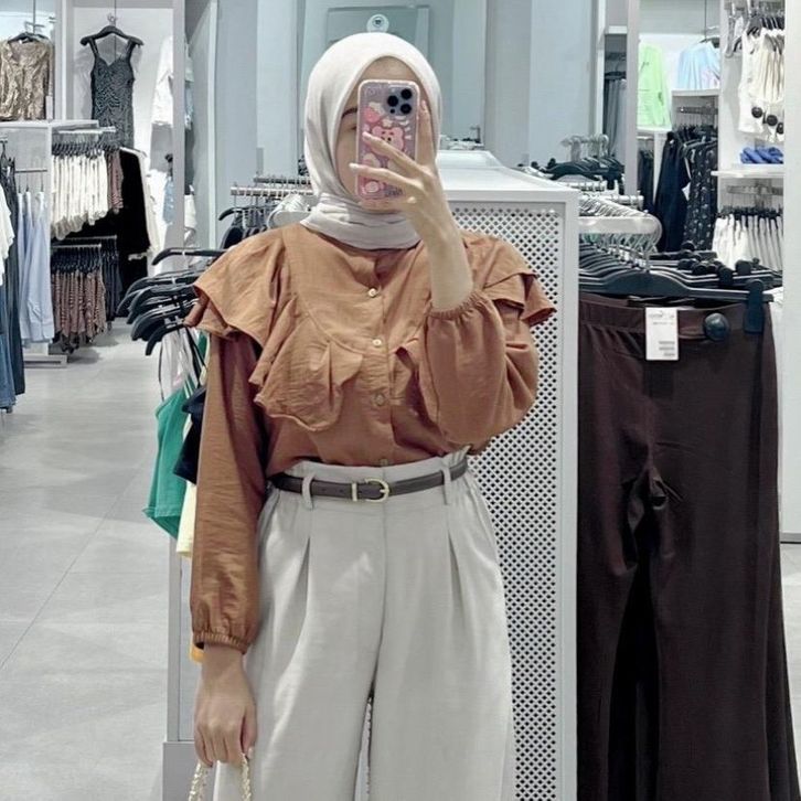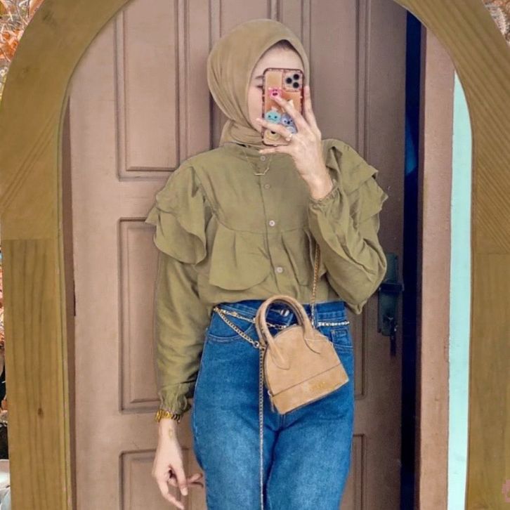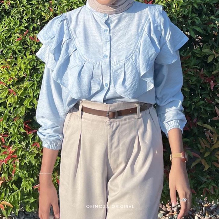 BAJU ATASAN WANITA BLOUSE PROMO ORIMOZA BLOUSE RUFFLE POLO LINEN RAFELLA BAJU BLOUSE CEWEK KOREA KEKINIAN BAJU KEMEJA
