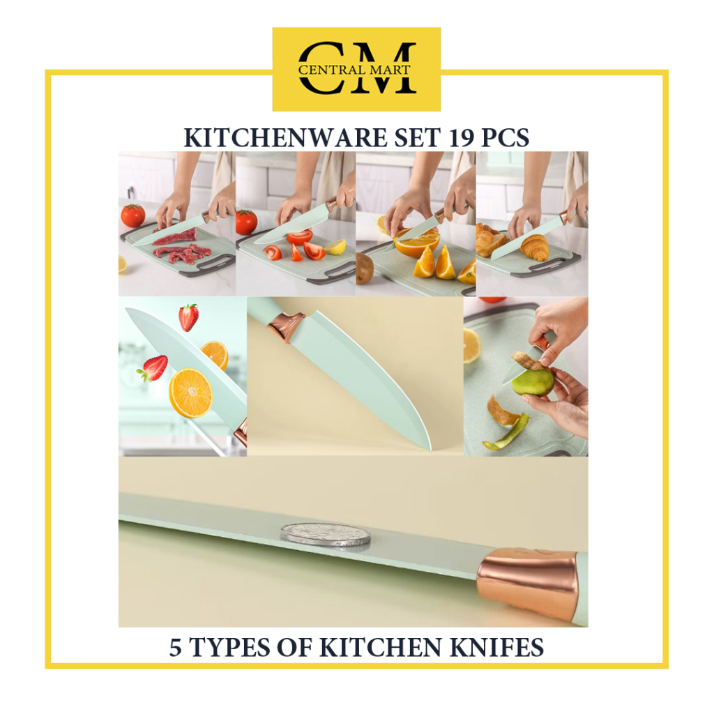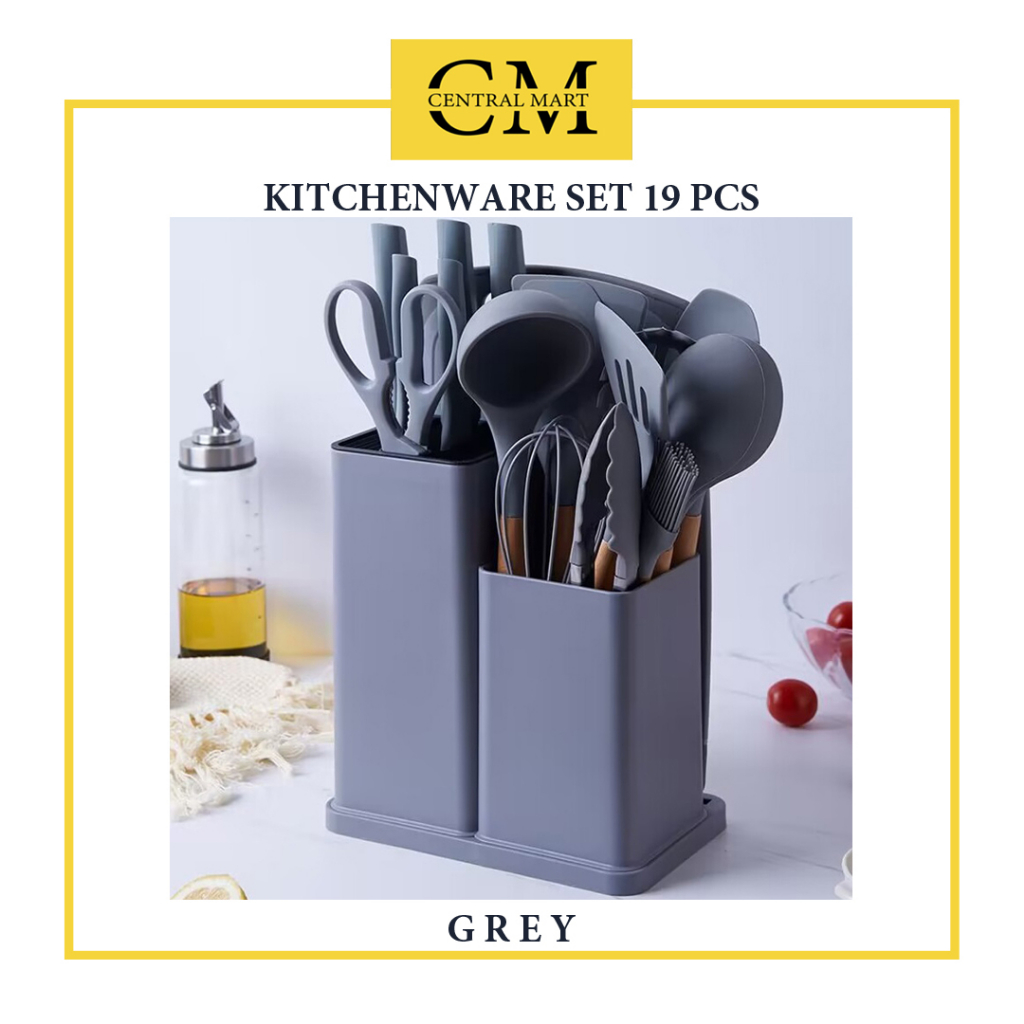SPATULA SILIKON KITCHENWARE SET PREMIUM 19 PCS SILICONE KNIFES SET PISAU DAN GUNTING