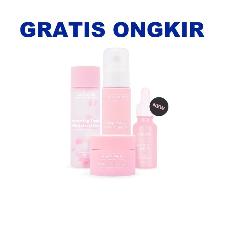 Baby Pink Skincare (4Pcs) Acne Reborn Series Complete with Rescue Serum with Tea Tree Oil, Salycilic acid, Niacinamide F