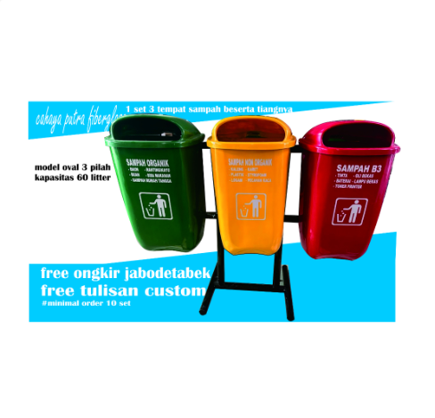 CICILAN TANPA DP tempat sampah gantung model oval 3 pilah kapasitas 60 litter, tempat sampah gantung, tempat sampah 3in1