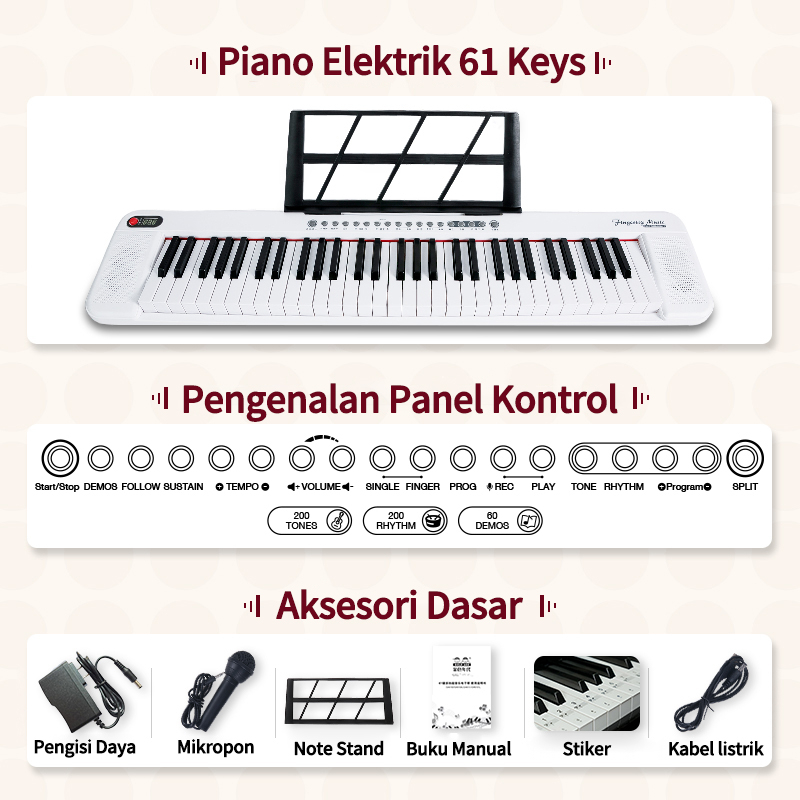 BENSTON MUSIC-PIANO ELEKTRONIK 61-KEY/PIANO ELEKTRONIK PORTABEL RUMAHAN/ PIANO ELEKTRONIK BATERAI ISI ULANG