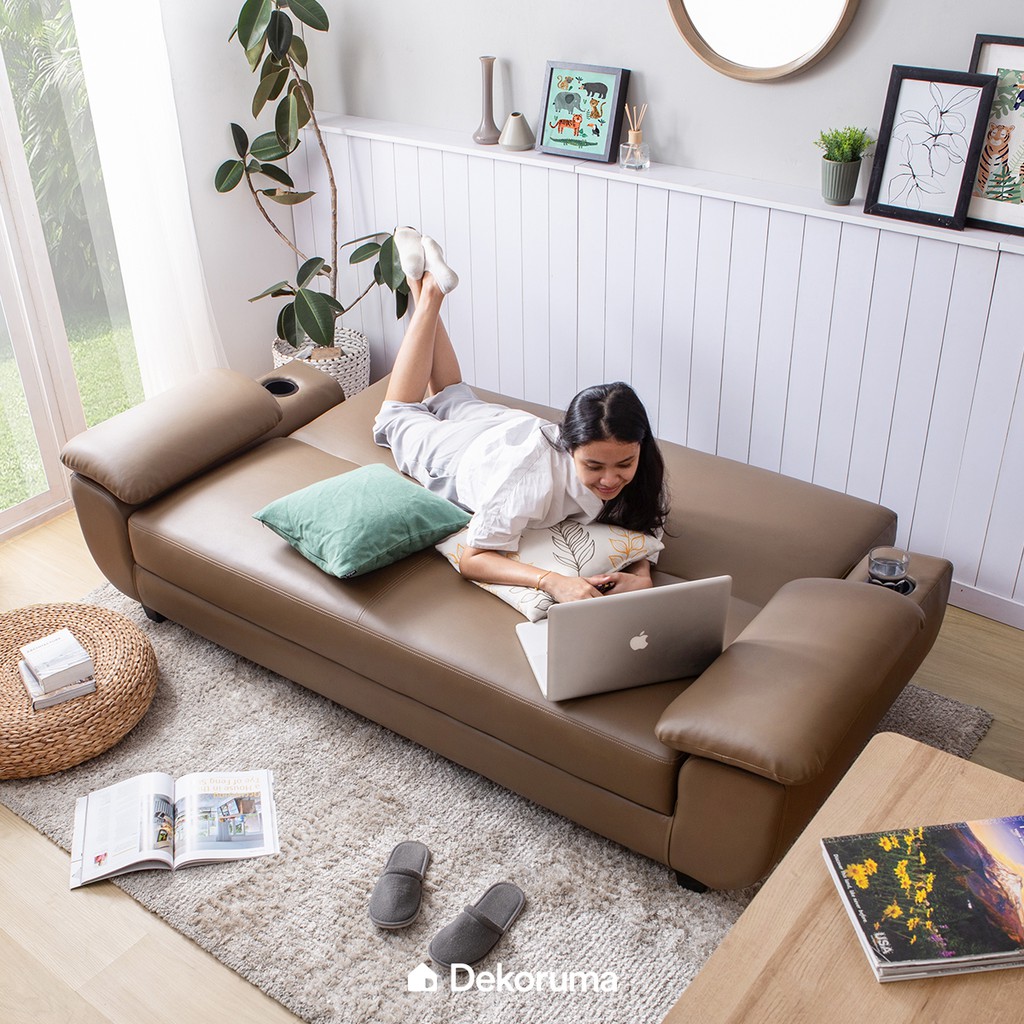 DEKORUMA HATO SOFA BED MINIMALIS KULIT | SOFABED RUANG TAMU