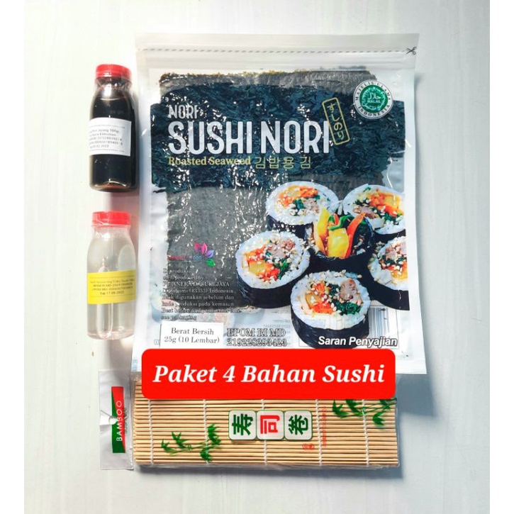 PAKET BAHAN SUSHI TIPE 4 LENGKAP NORI CUKA BAMBU SUSHI SHOYU DRIED SEAWEED VINEGAR SOY SAUCE TIKAR KECAP ASIN