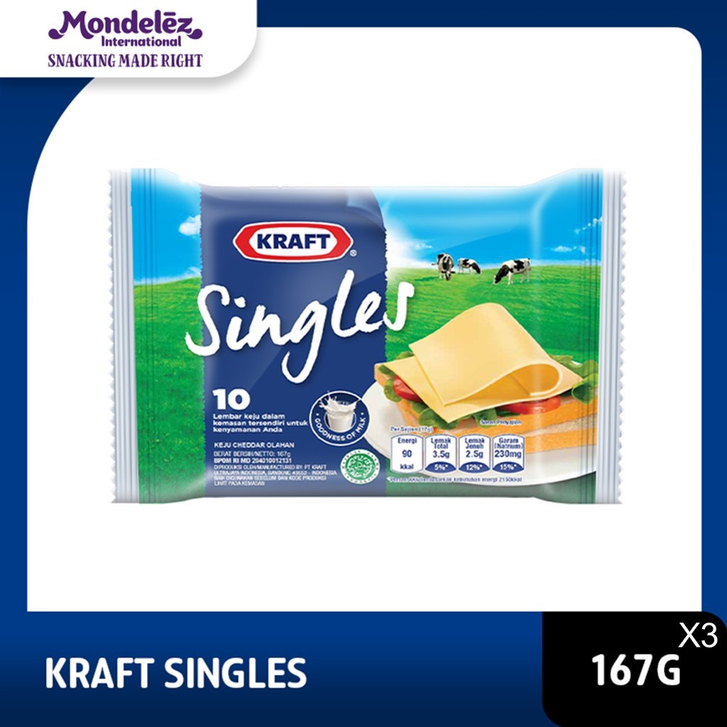 KRAFT KEJU HIGH CALCIUM SINGLES 10 SLICE 150G, UNTUK CEMILAN DAN TOPPING BURGER - TRIPLE PACK