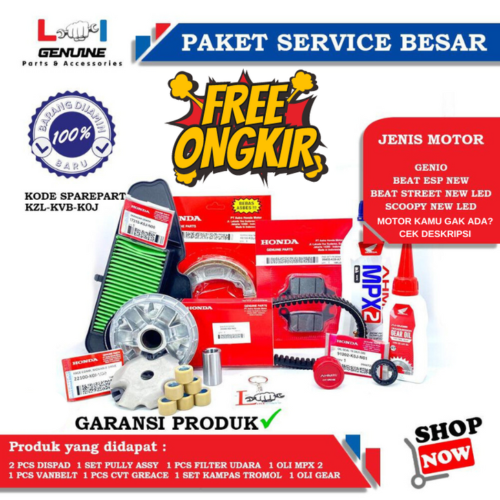 PAKET SERVICE OLI KAMPAS REM VANBELT FILTER RUMAH ROLLER BEAT FI ESP SCOOPY FI SPACY FI VARIO 110 FI LED ESP BEAT SPORTY