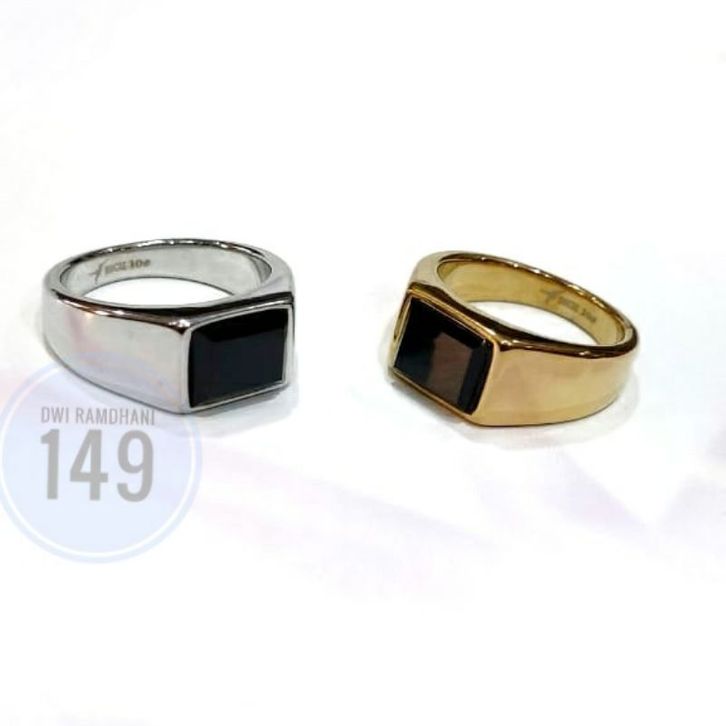 Cin cin Tita nium Batu Black onyx simple kotak Ring stai nless steel pria wanita