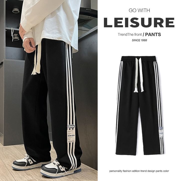 Celana Panjang Pria Kasual Korea Style Loose Fit Hitam Polos | Sweatpants Straight Pinggang Elastis