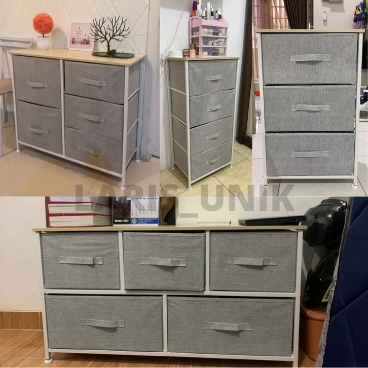 TERMURAH Lemari TV 2 Tingkat 5 Laci Kain Linen Lemari Sisi Ranjang Lemari Portable Rak Lemari Penyimpanan Lemari Sisi Ra