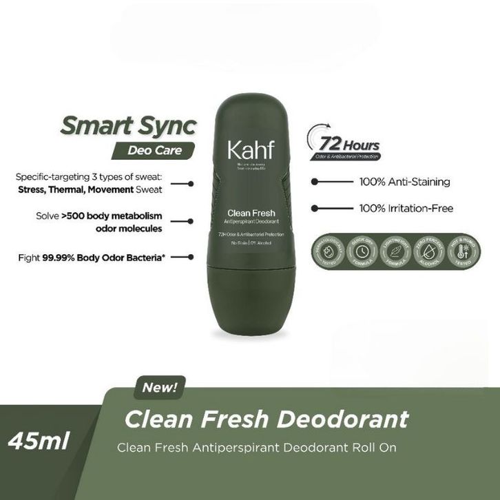 Kahf Antiperspirant Deodorant Roll On 45 Ml Deodorant Pria Menghilangkan Bau Badan Yang Tidak Sedap Clean Fresh