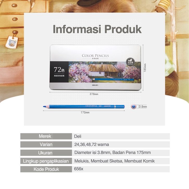 PENSIL WARNA DELI HIGH-GRADE OIL PENCIL COLOR MINYAK 48/72 WARNA 6567 6568 PERALATAN MENGGAMBAR TERBARU