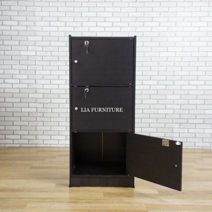 PROMO RAK SERBAGUNA LEMARI BUKU RAK BUKU 3 SUSUN PINTU KAYU FULL KUNCI 1304