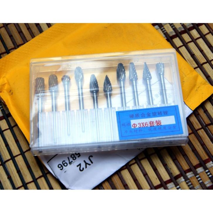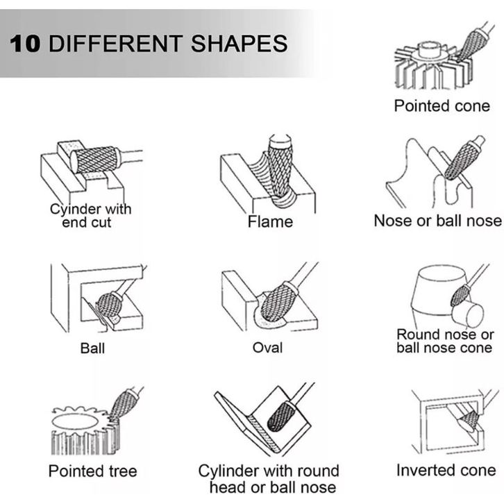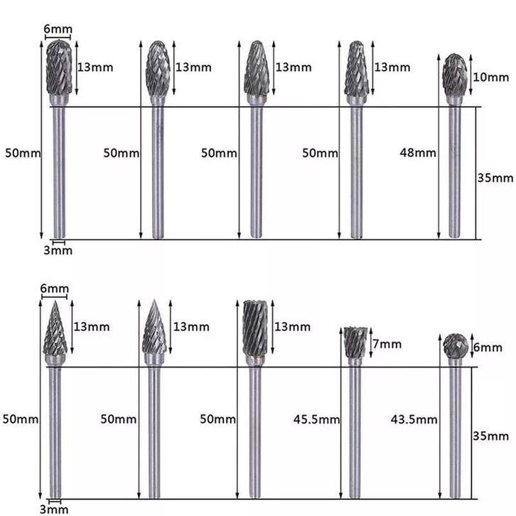 10pcs Mata Bur Tuner Rotary Burr Porting Set Tungsten Carbide Grinding Cutting Porting Mini Grinder Drill Bor Solid Tct