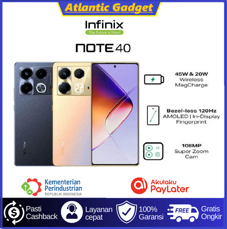 Hp Infinix Note 40 RAM 8/256GB | MediaTek Helio G99 Ultimate | Layar 6.78"AMOLED | Kamera 108MP | MagCharge Wireless 20W