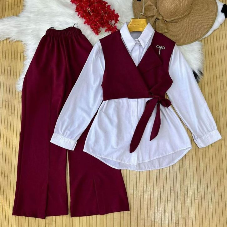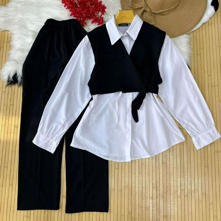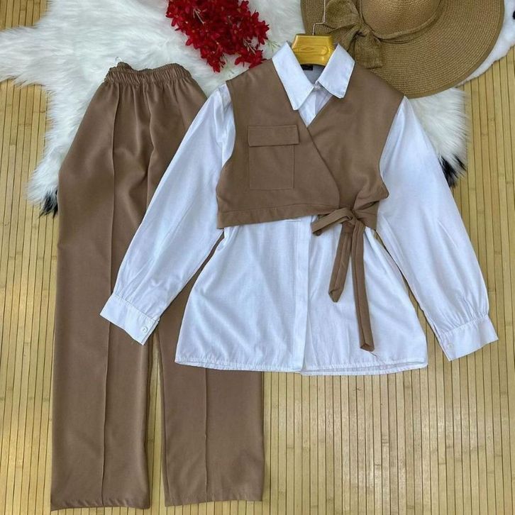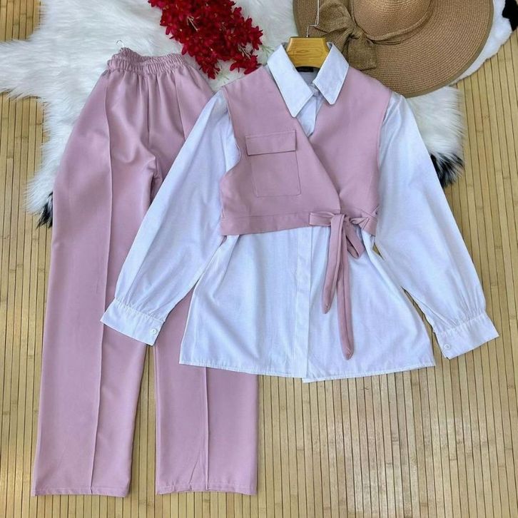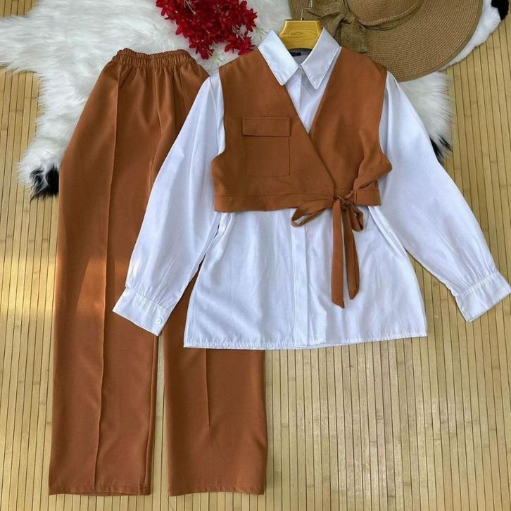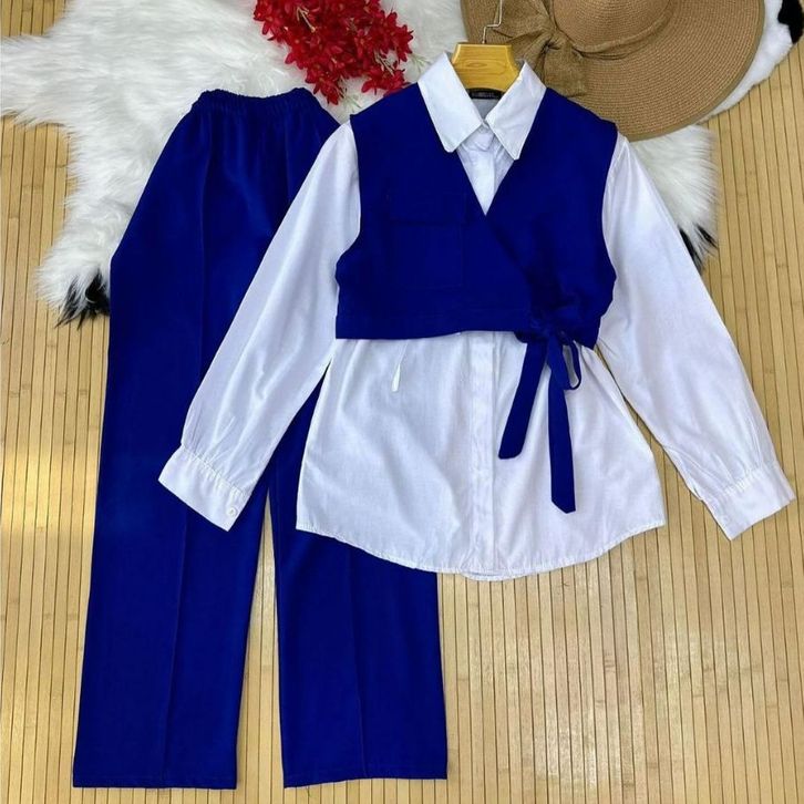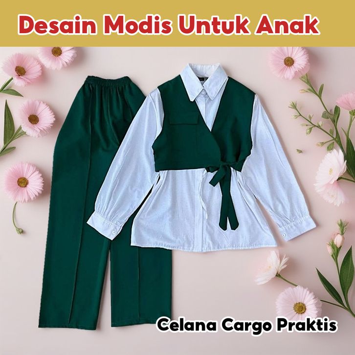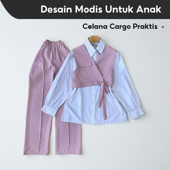 [Star] Setelan Anak Perempuan Usia 2-15Thn Oneset Kemeja Lengan Panjang Multicolour Dan Celana Cargo Panjang Import