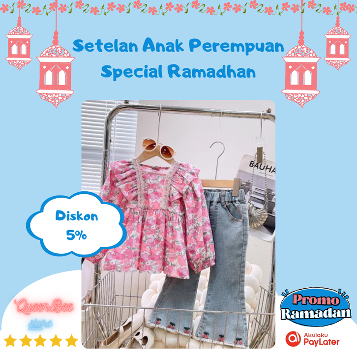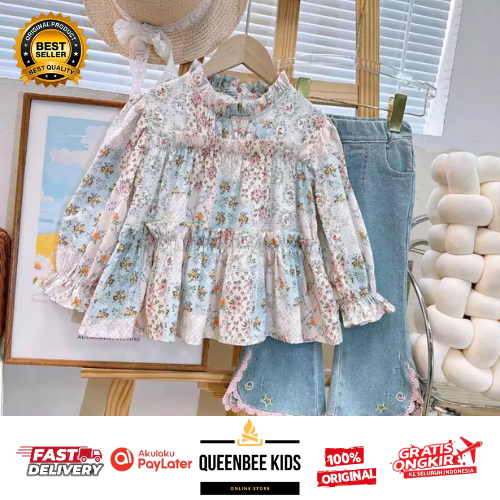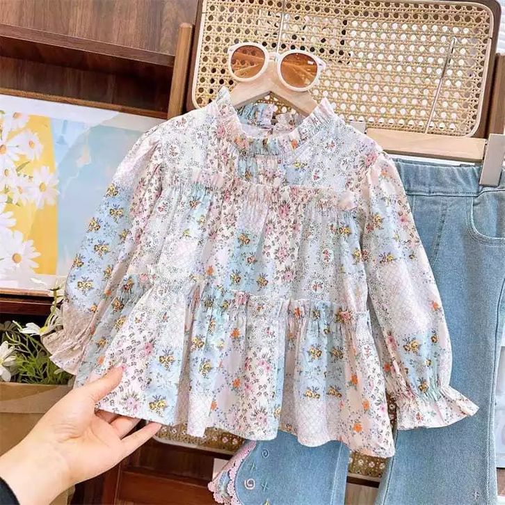 Setelan Anak Perempuan Import 2-7 Tahun Korean Style Setelan Blouse Rose Aster Celana Jeans Panjang Anak Cewek BS-648