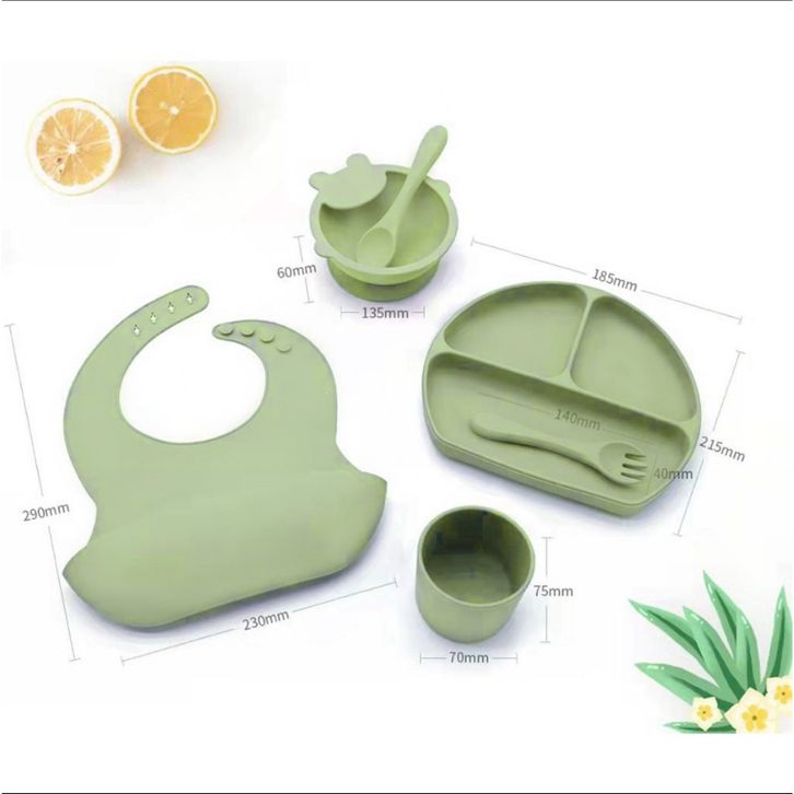 PERALATAN SET MAKAN BAYI KEOLA - 6PCS FREE BOX SET PREMIUM SILICONE GIFT SET / HAMPERS / PERALATAN MAKAN BAYI SILICONE