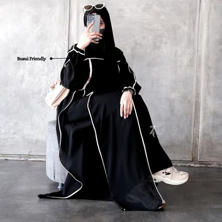 ABAYA HITAM TURKEY AISYAH GAMIS SYARI MUSLIMAH JETBLACK HITAM KOMBINASI CHIFFON ABAYA UMROH TERLARIS