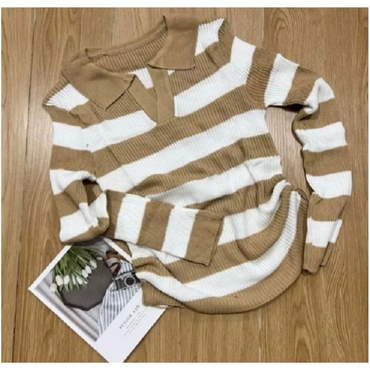 Sweater Rajut Atasan Blouse Wanita Premium Motif Polo Kancing Stripe Tali Serut