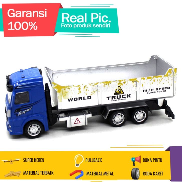 Diecast Miniatur Mainan Mobil Dump Truk Barang Pullback Metal Pioneer Mainan Mobil-Mobilan Miniatur Dapat digerakan