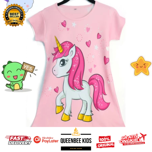 Daster Anak Perempuan Unicorn Kain Scuba Premium