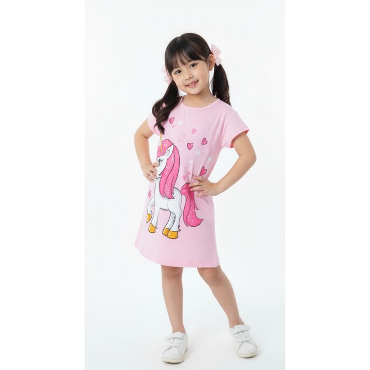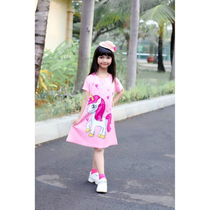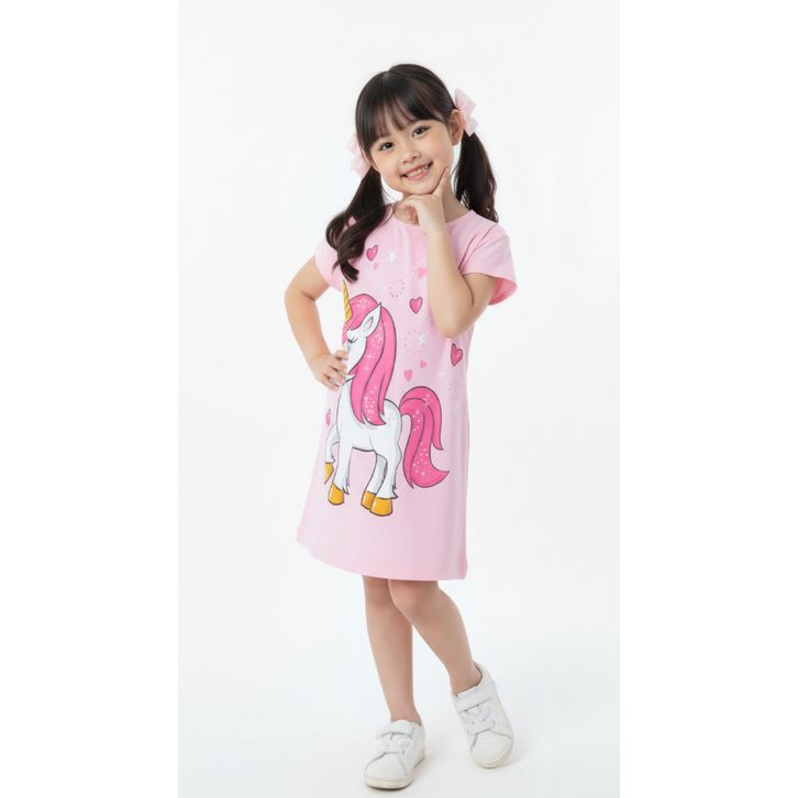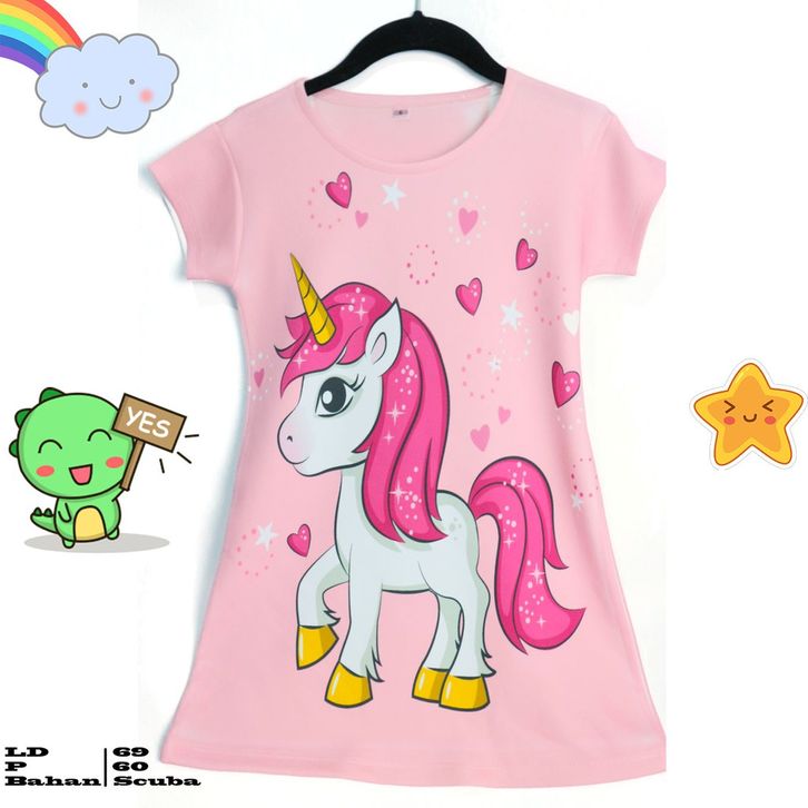 [Star] Daster Anak Perempuan Motif Unicorn Lucu Kain Scuba Premium