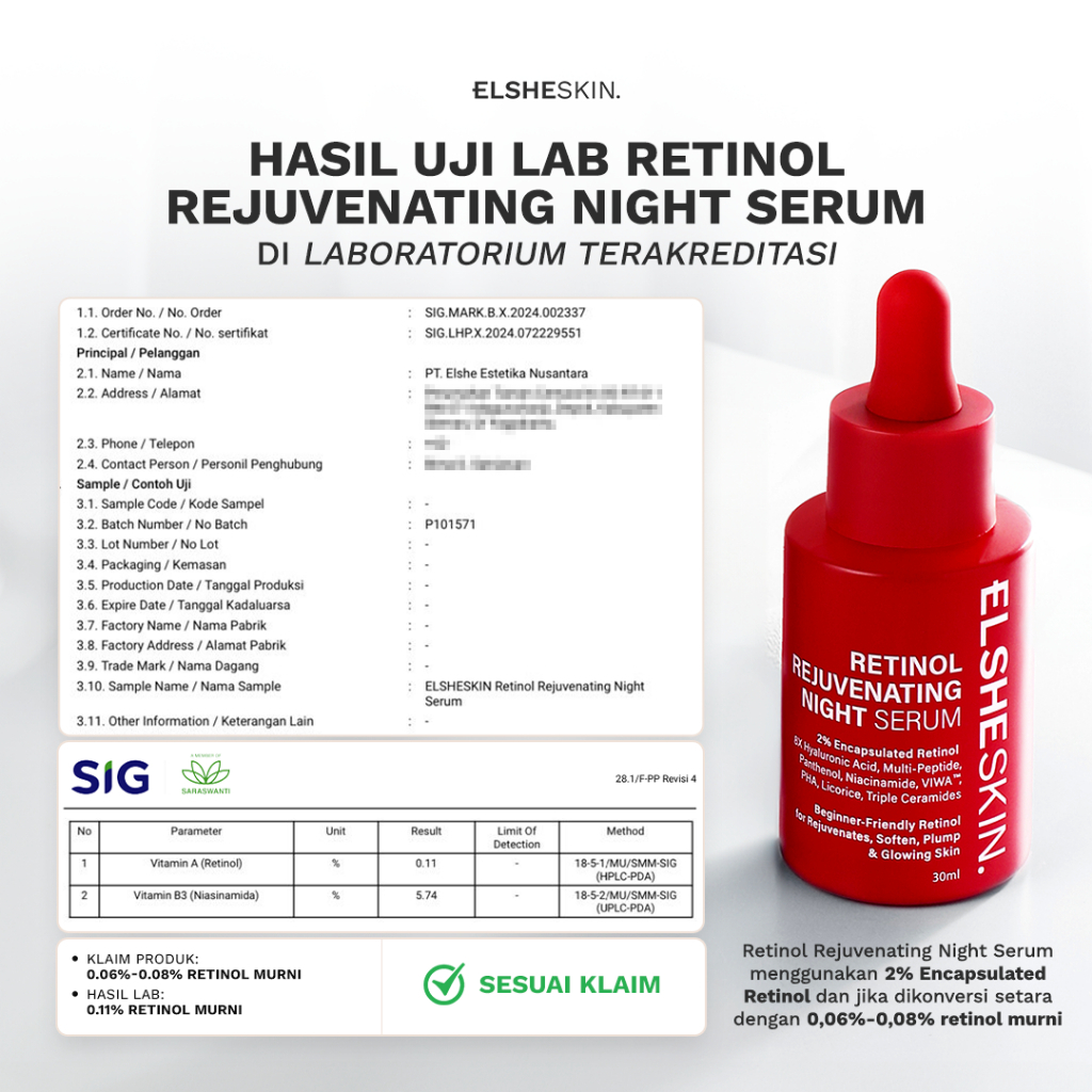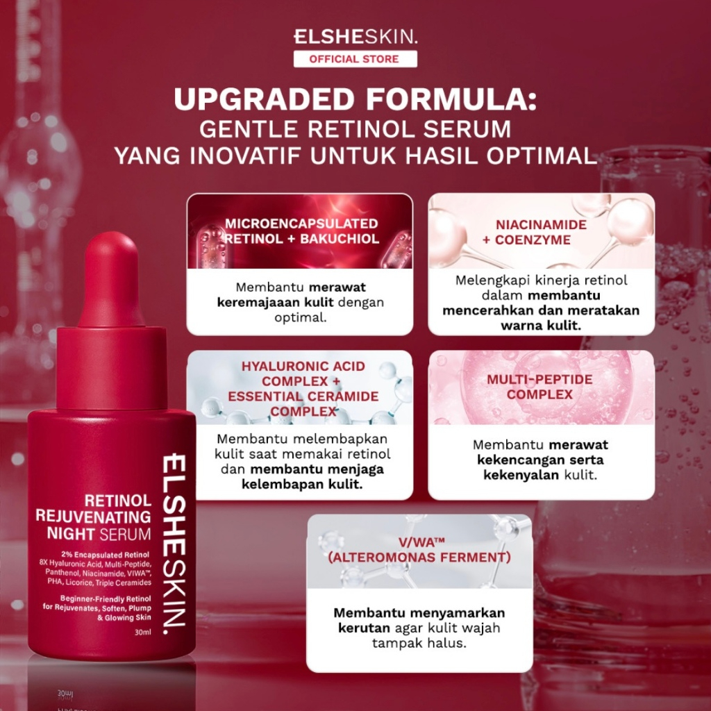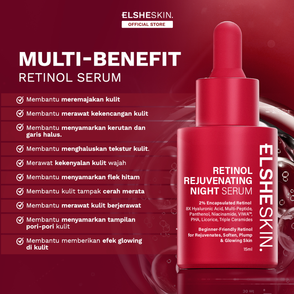 ElsheSkin Retinol Rejuvenating Night Serum - 15/30ml Retinol (Kulit Kenyal dalam 1 Malam) - Serum Anti Aging
