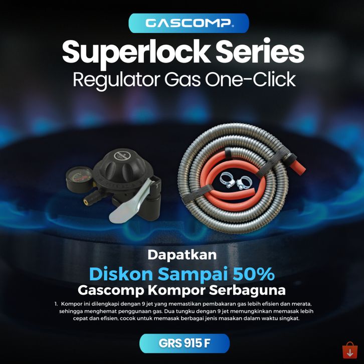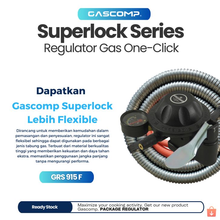 DISKON/PROMO/GASCOMP SUPERLOCK REGULATOR GAS LOW PRESSURE DENGAN SELANG FLEXIBLE HITAM 5 LAPISAN KUAT DAN AWET SELANG AN