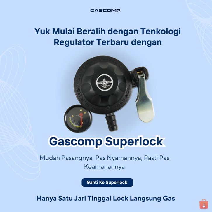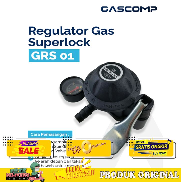 PROMO/GASCOMP REGULATOR METER SUPERLOCK 01 KLIK GRS-01 REGULATOR GAS AMAN REGULATOR GAS ANTI BOCOR REGULATOR GAS SNI REG