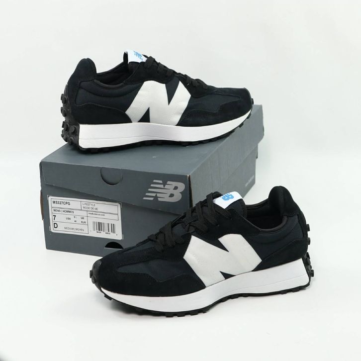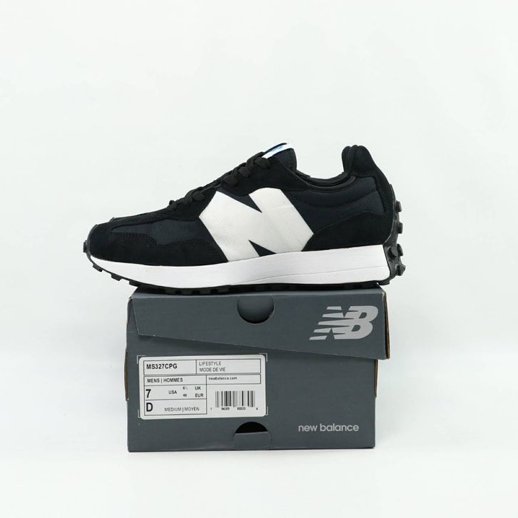 SEPATU NEW BALANCE 327 BLACK WHITE MS327CPG ORIGINAL BNIB FULL TAG BARCODE BAHAN LEATHER KULIT