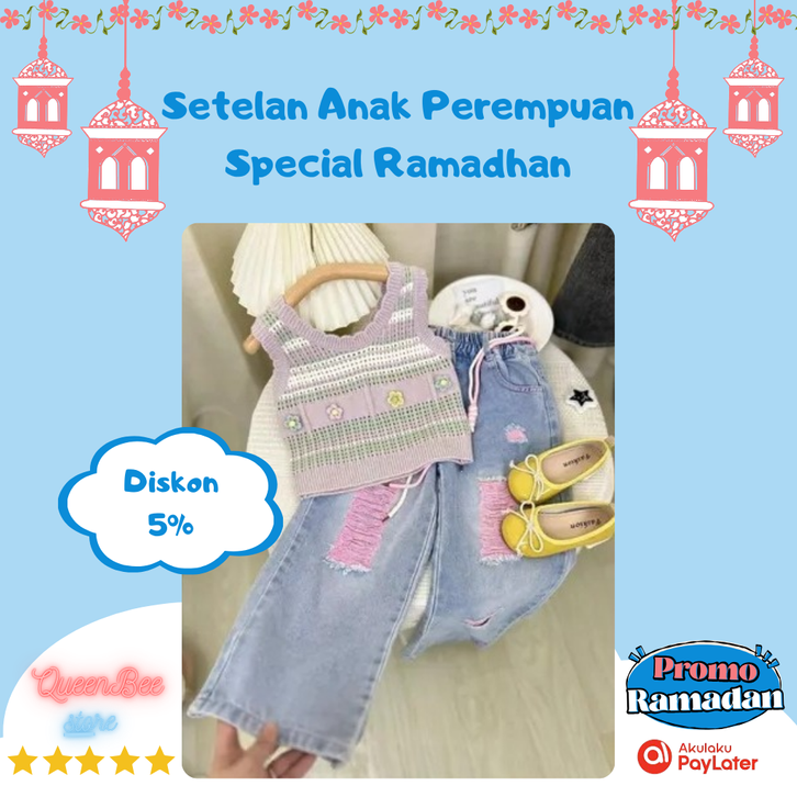 [Star] Setelan Anak Perempuan Import 2-7 Tahun Stelan Anak Cewek Korea Style Set Baju Tanktop Hitam Celana Jeans Mini An