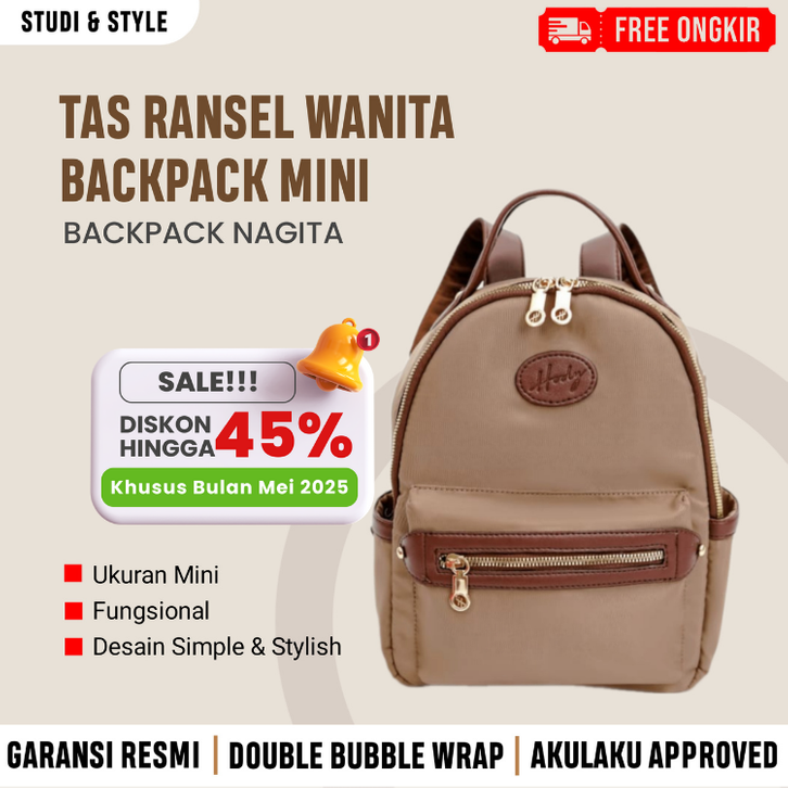 Tas Ransel Cewek Nagita Backpack Simple Mini Tas Gendong Cewek Desain Trendy Imut Kecil Casual Kekinian