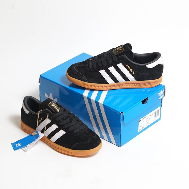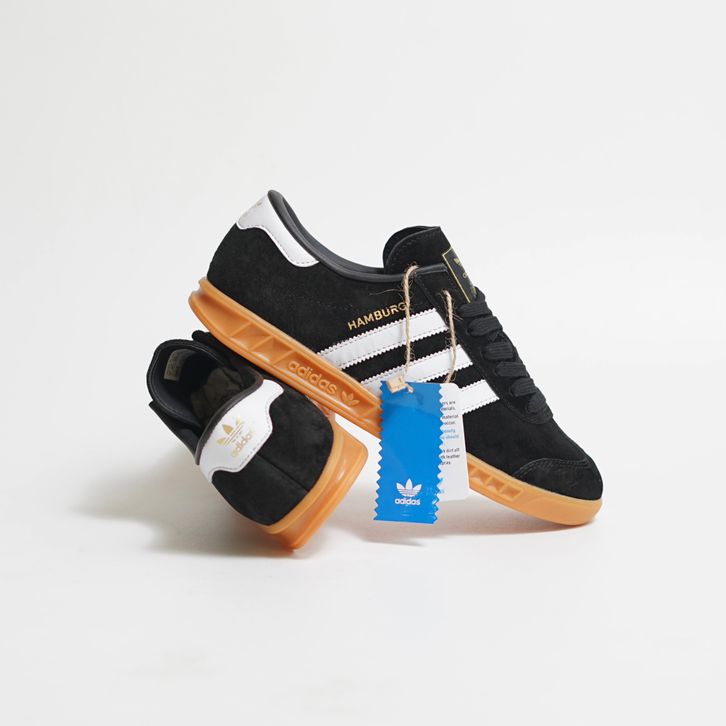SEPATU ADIDAS HAMBURG BLACK WHITE GUM S76696 ORIGINAL BNIB FULL TAG BARCODE BAHAN LEATHER KULIT