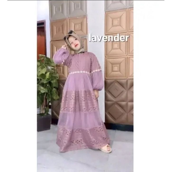 Gamis pesta Anak perempuan Bahan Brukat Tile kekinian Ukuran S/M/L/XL Umur 3-17 Tahun Terlaris Sekarang