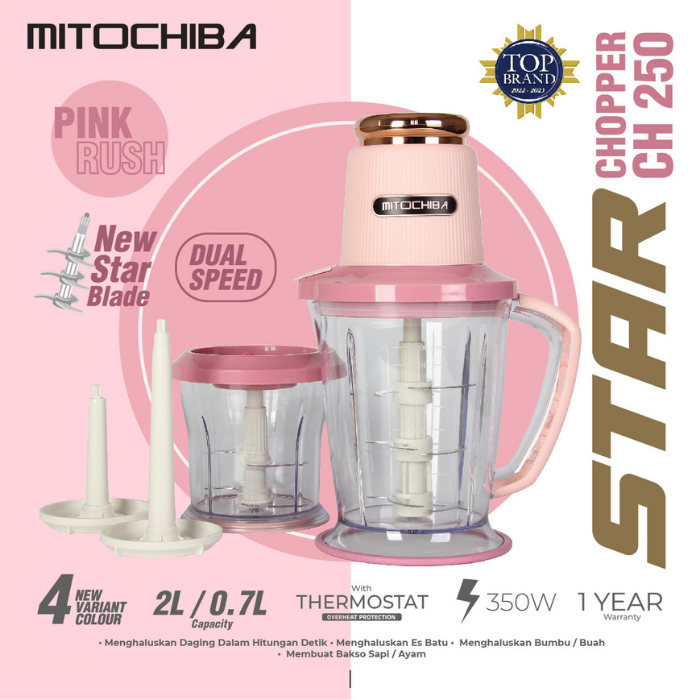 Mitochiba Chopper CH-200 & CH-250 – Blender Daging & Bumbu 2 Liter, Triple Blade Food Processor