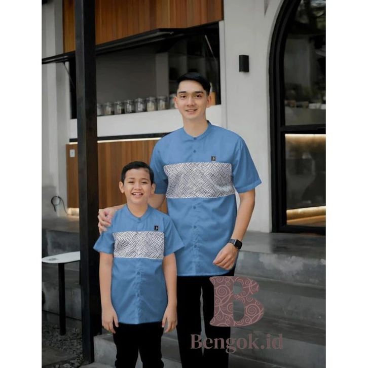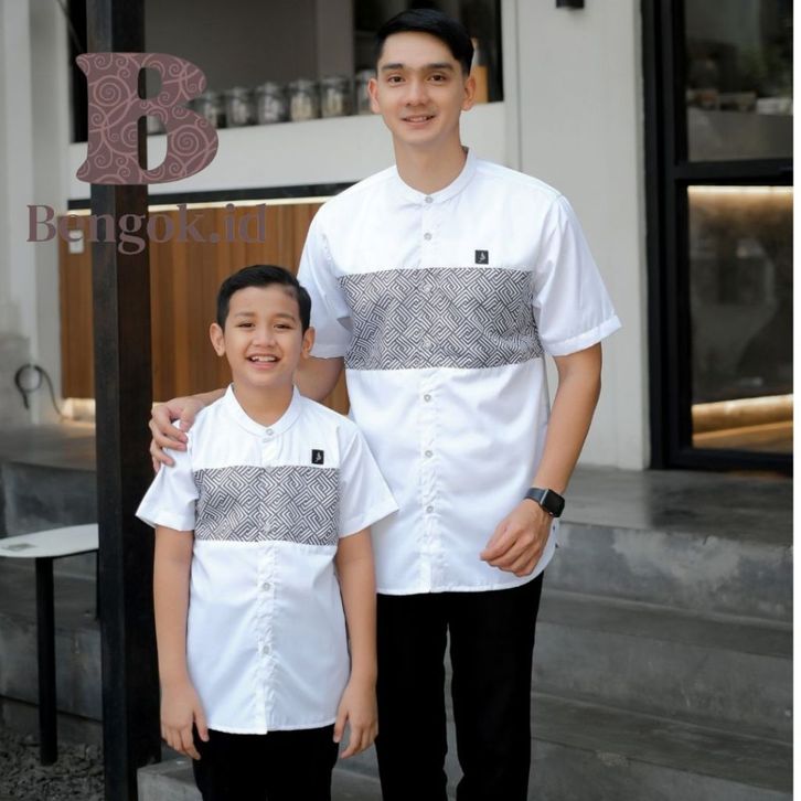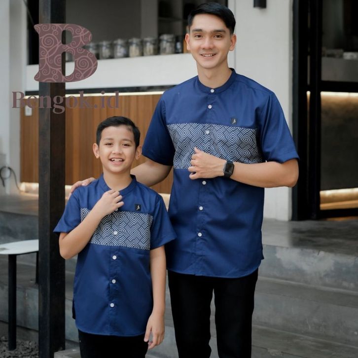Baju Koko Lengan Pendek Couple Motif Batik Warna Hitam Couple Ayah Dan Anak