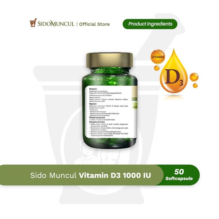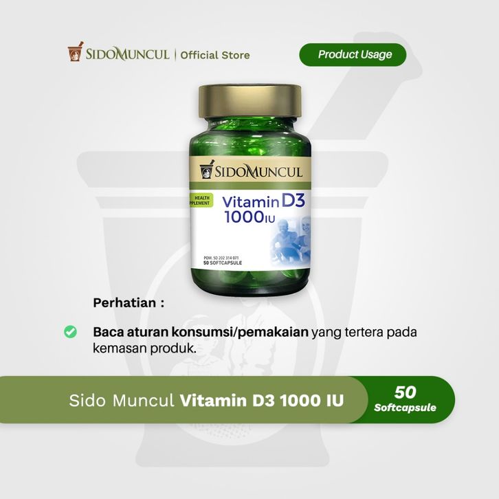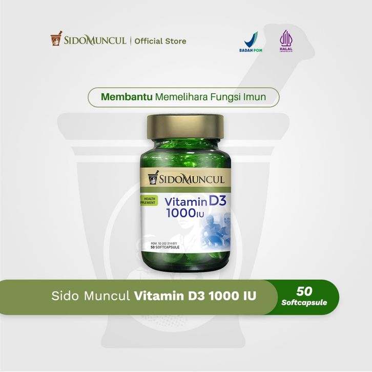KAPSUL VITAMIN D3 SIDO MUNCUL NATURAL 1000 IU SUPLEMEN KESEHATAN TULANG KALSIUM AUTO IMUN ORIGINAL BPOM TERBARU