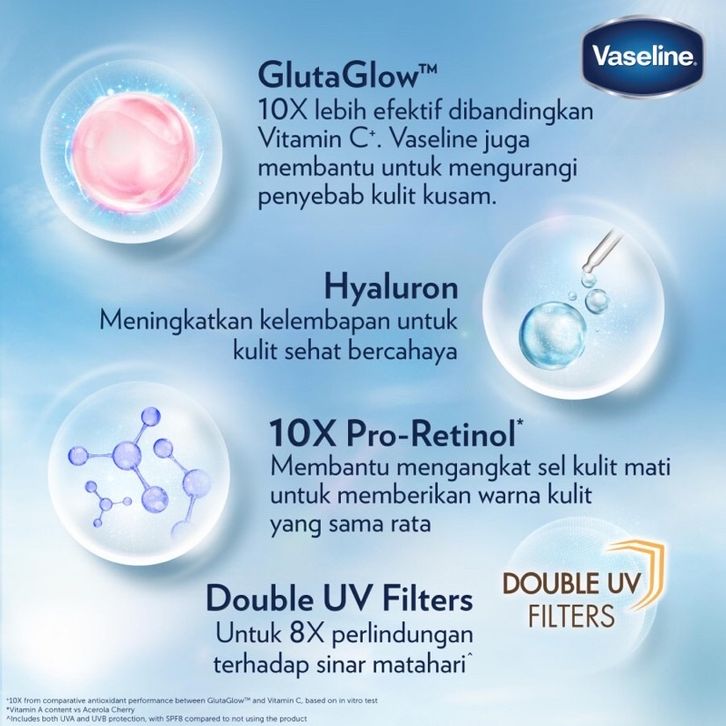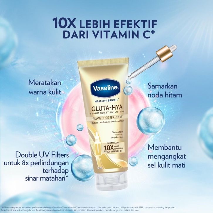 VASELINE HEALTHY BRIGHT GLUTA HYALURON & PEPTIDE SERUM BURST UV LOTION DEWY RADIANCE FLAWLESS BRIGHT OVERNIGHT RADIANCE