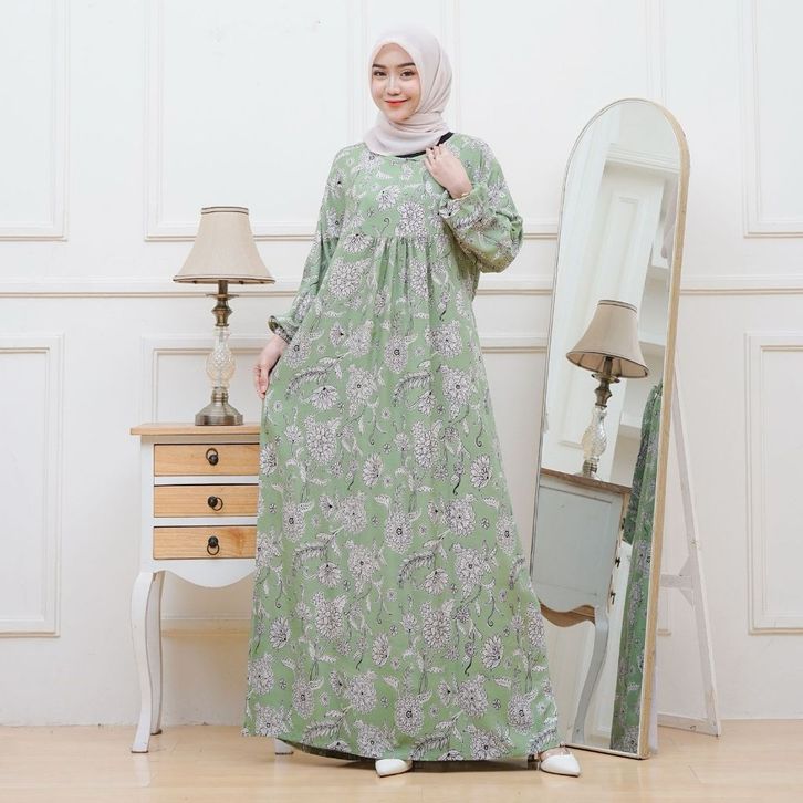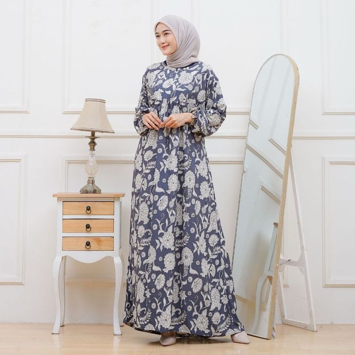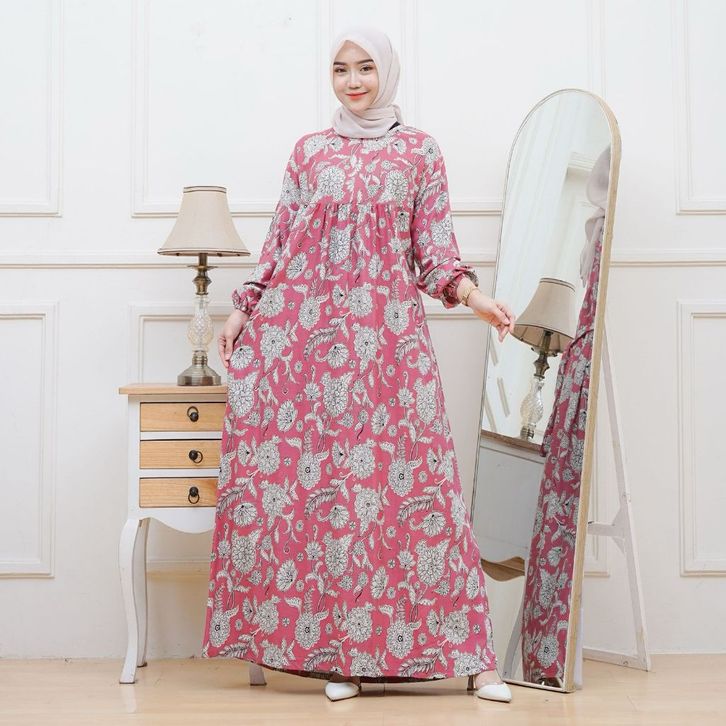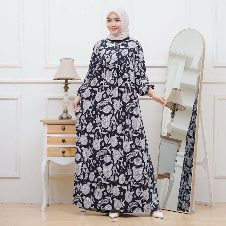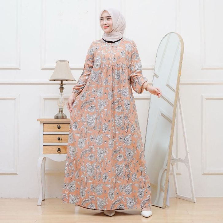 Gamis Niswara Motif Bunga-Bunga Mewah Rayon Premium Ukuran Jumbo Dress muslim gamis wanita terbaru 2025 2026 murah