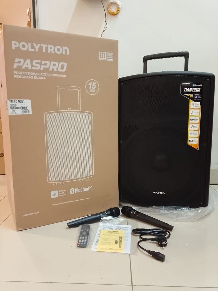 SPEAKER PORTABLE 15IN POLYTRON PASPRO 15F3 PAS PRO15F3 15 INCH ORIGINAL FREE 2 MIC WIRELESS