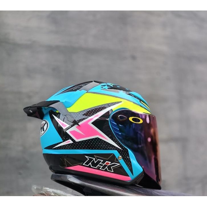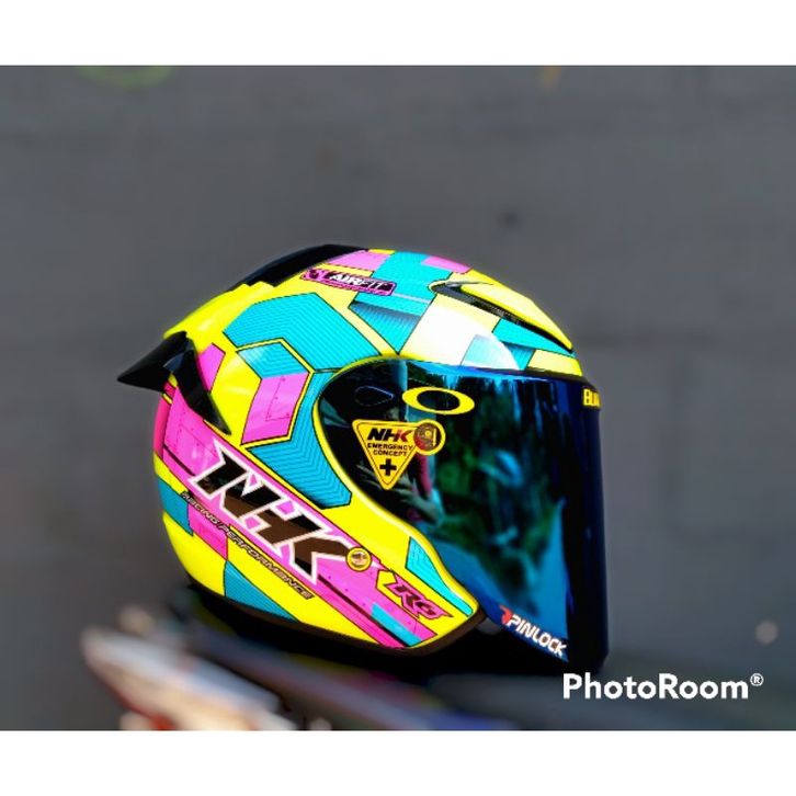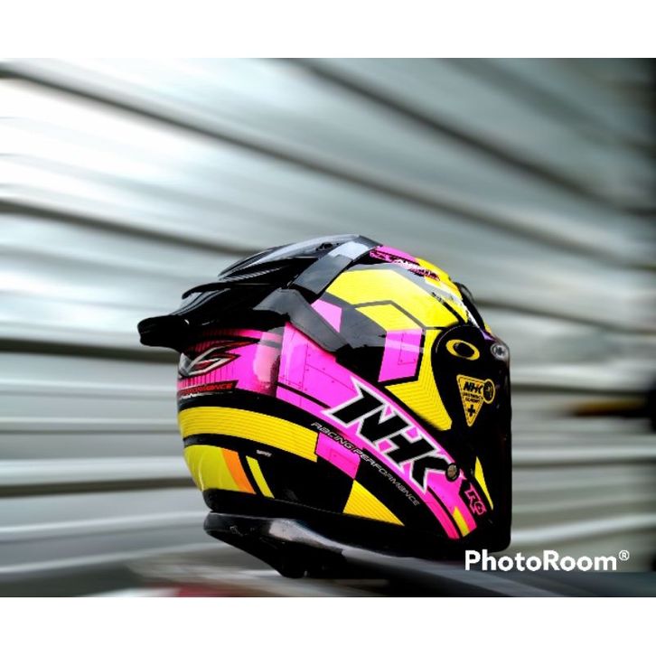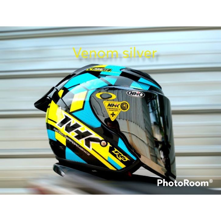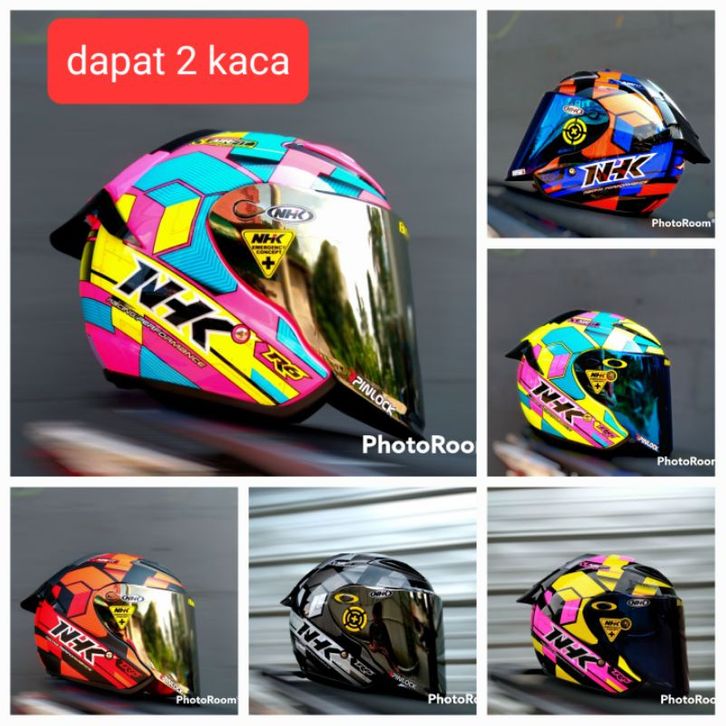 [Star] ( FREE ONGKIR ) HELM NHK R6 CORAK CUBE PAKET GANTENG VENOM VISOR PNP WITH SPOILER +STIKER , DAPAT 2 KACA