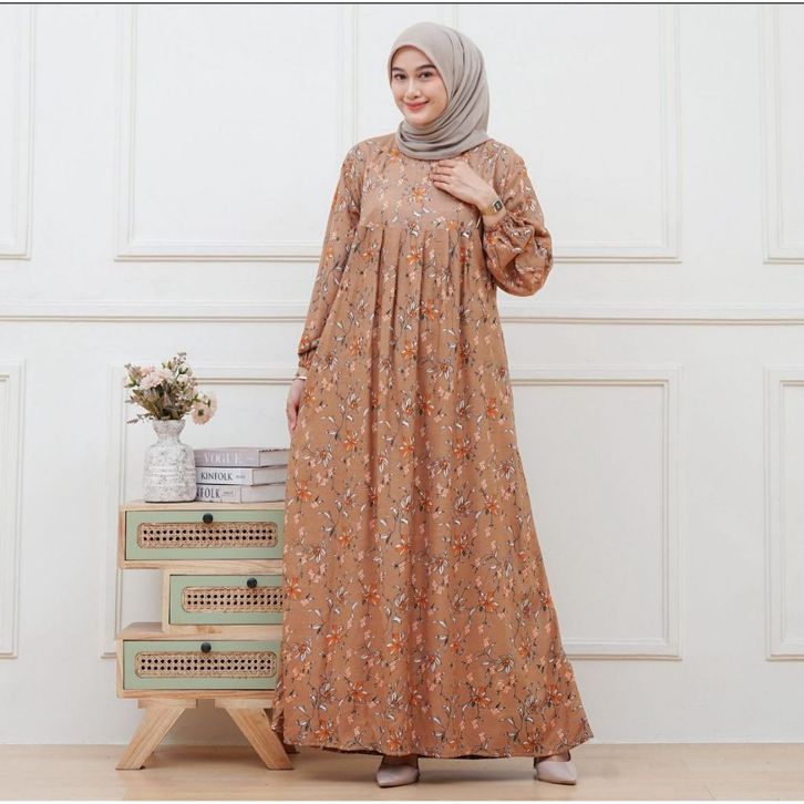 Gamis Rinti Rayon Premiun Motif Bunga Kekinian dress muslim gamis wanita terbaru 2025 2026 murah